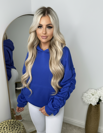 Penny Ruched Sleeve Hoodie - Royal Blue
