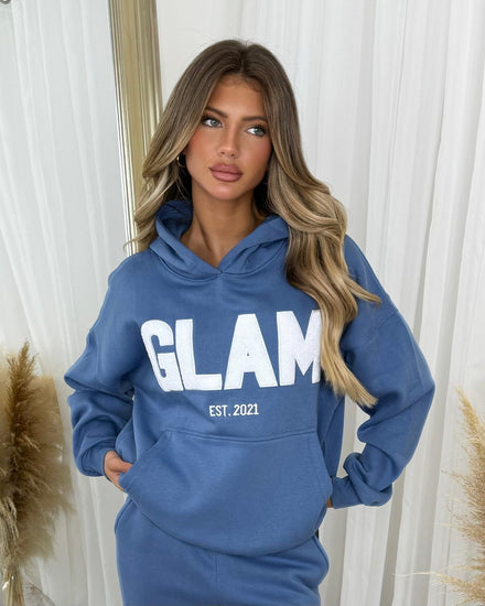 Petra Plain Fleece Lined Flared Leg Joggers - Denim Blue