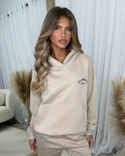 Harlow Plain Fleece Lined Cuffed Leg Joggers - Beige