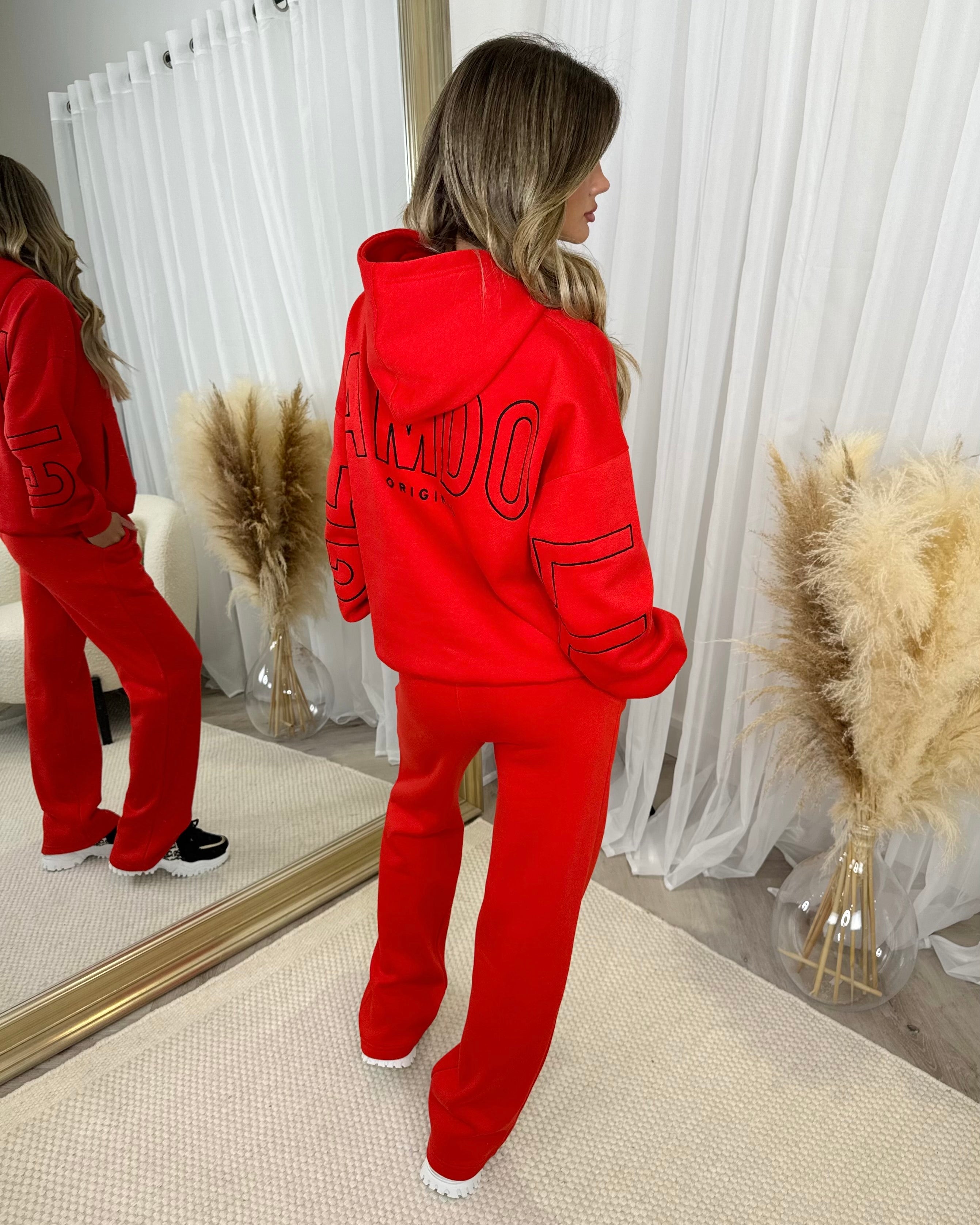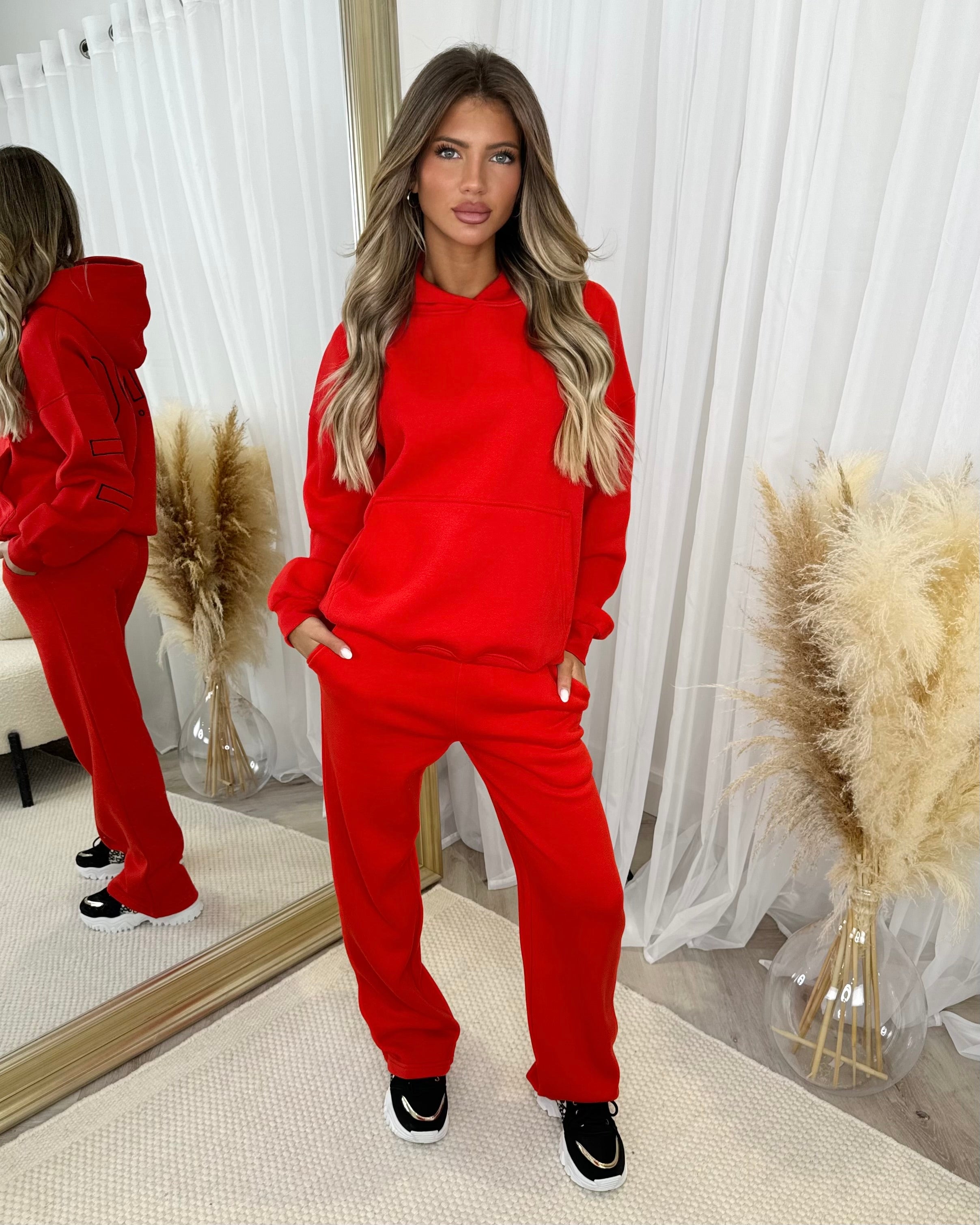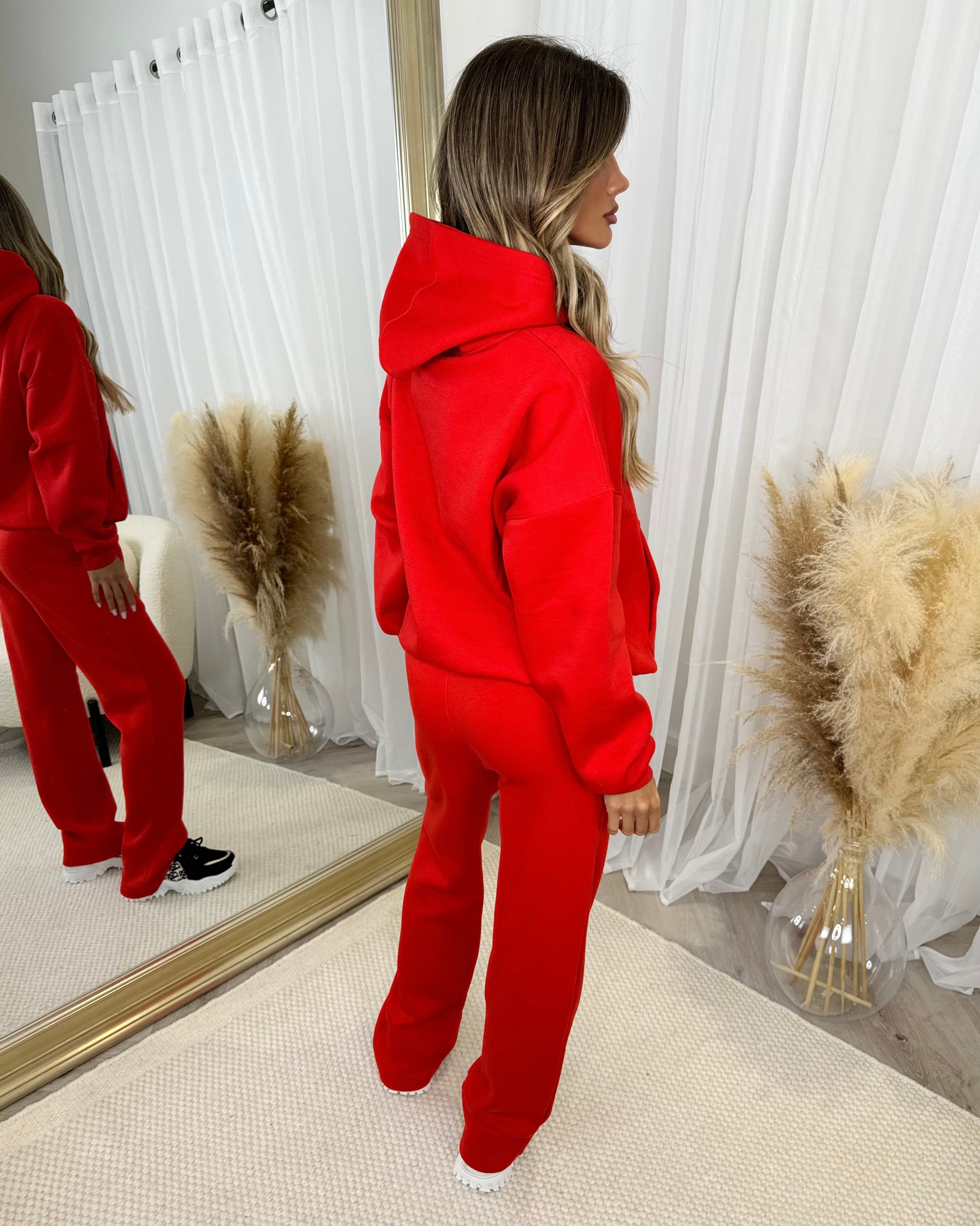 Ada Plain Fleece Lined Straight Leg Joggers - Red