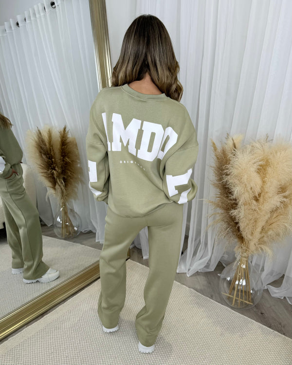 Alanna Round Neck 'GLAMDOLL' Back Print Fleece Lined Jumper - Sage Green