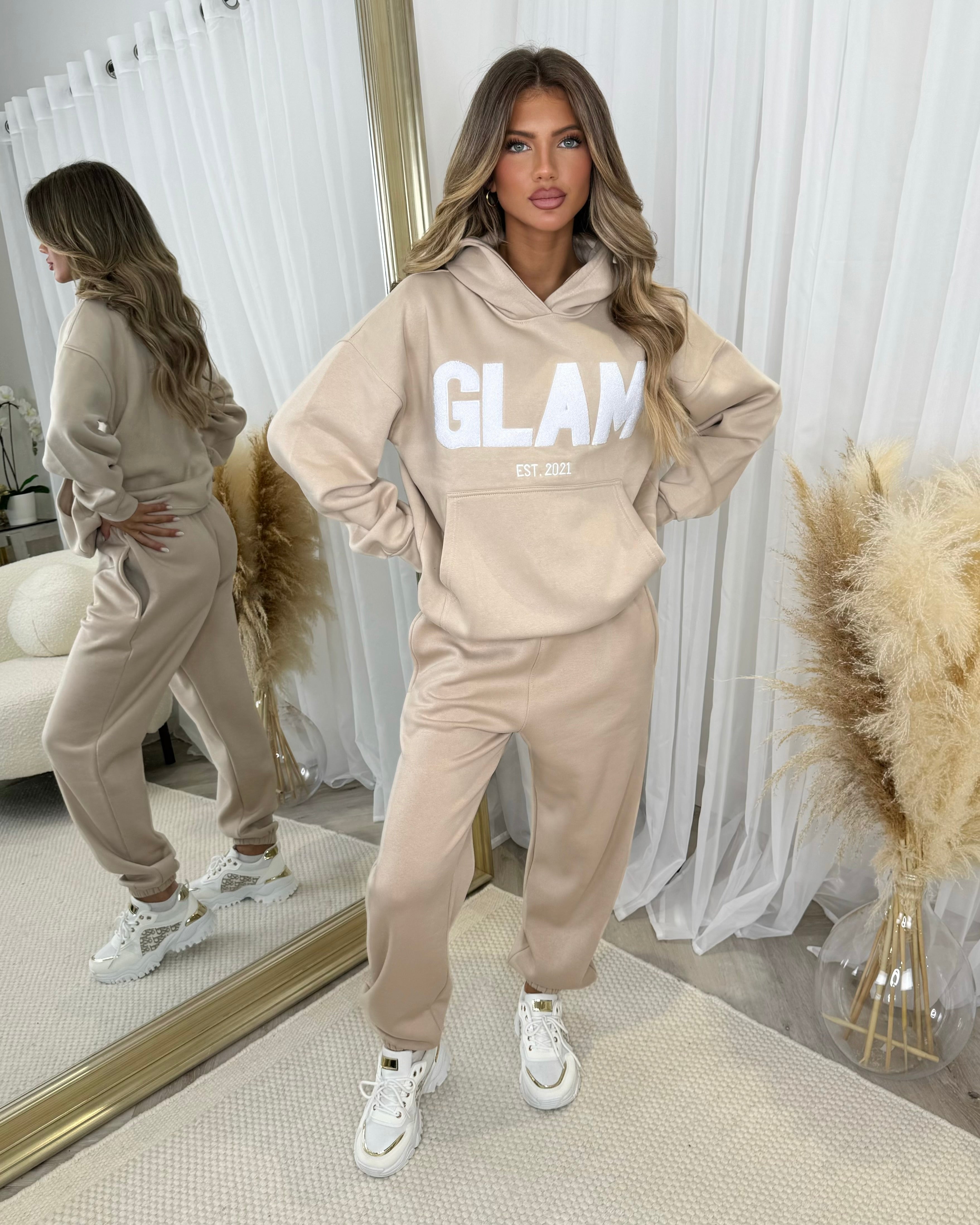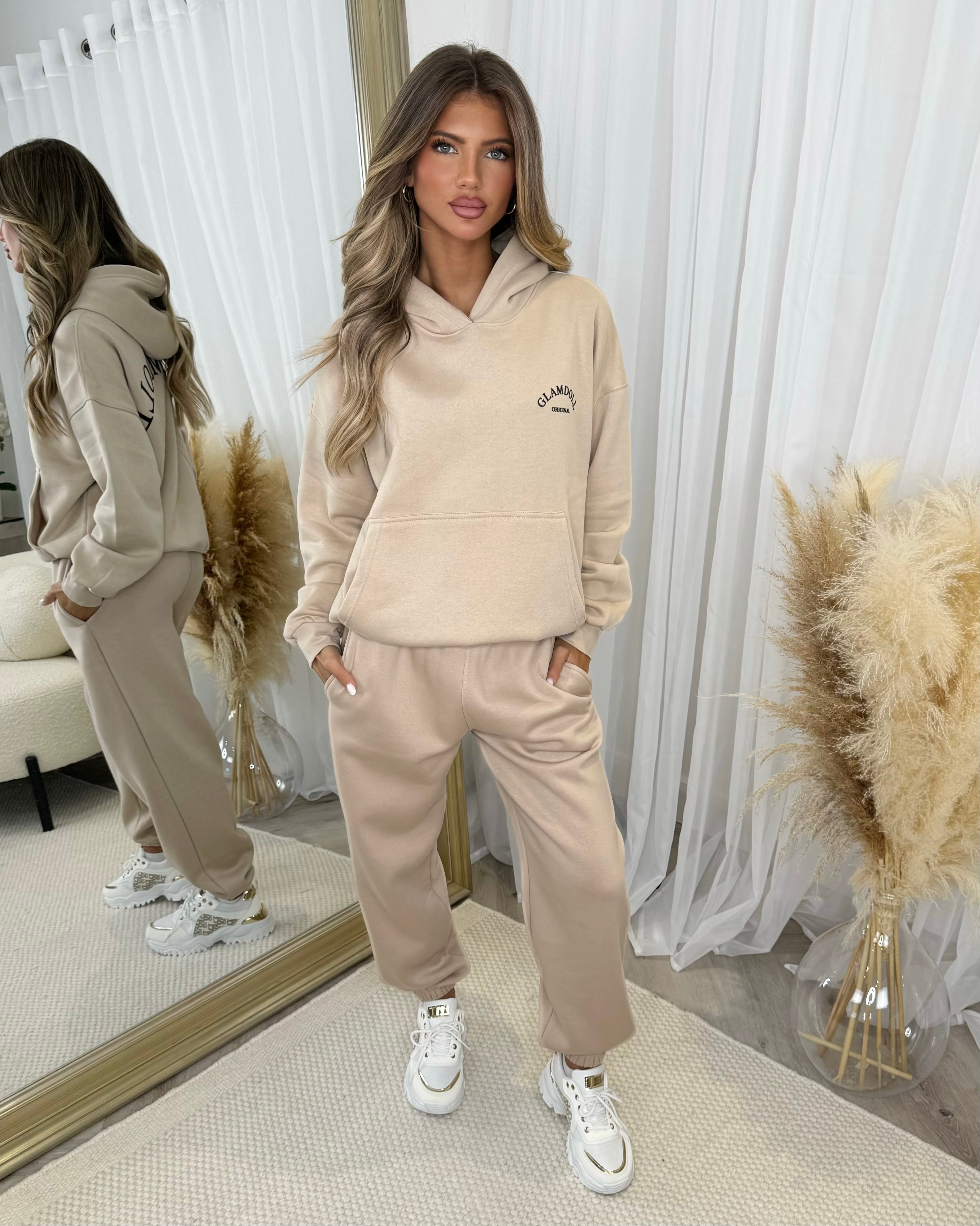 Harlow Plain Fleece Lined Cuffed Leg Joggers - Beige