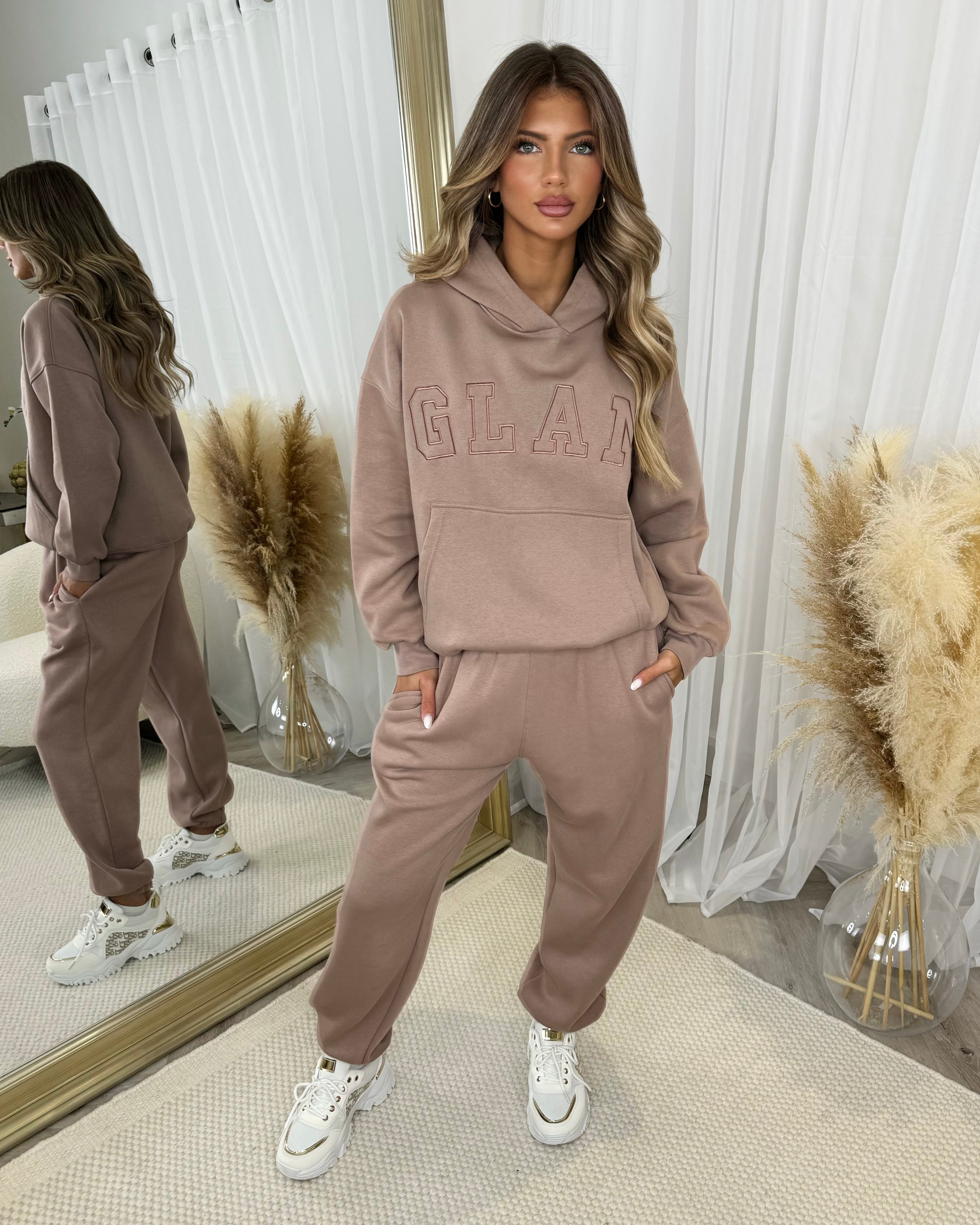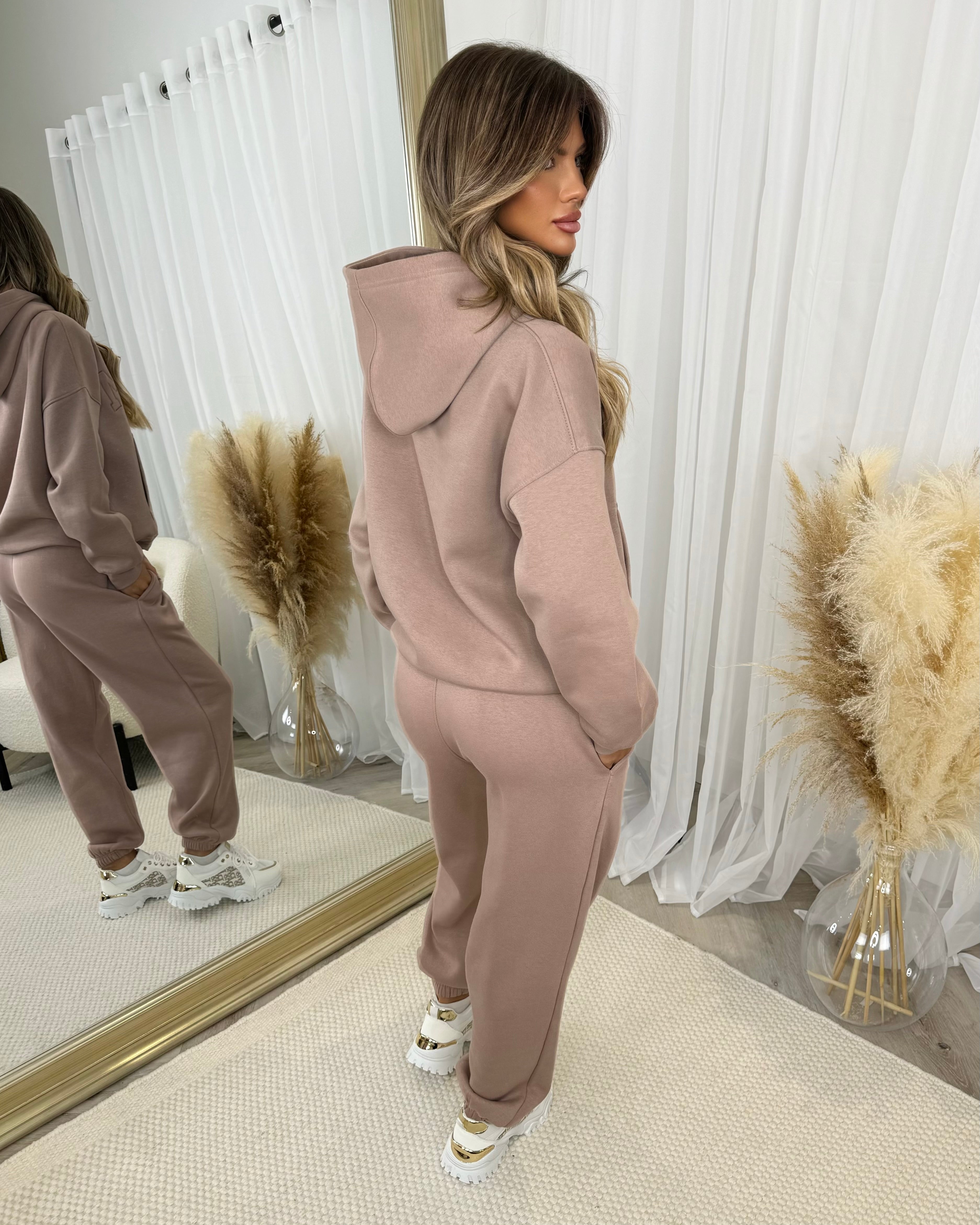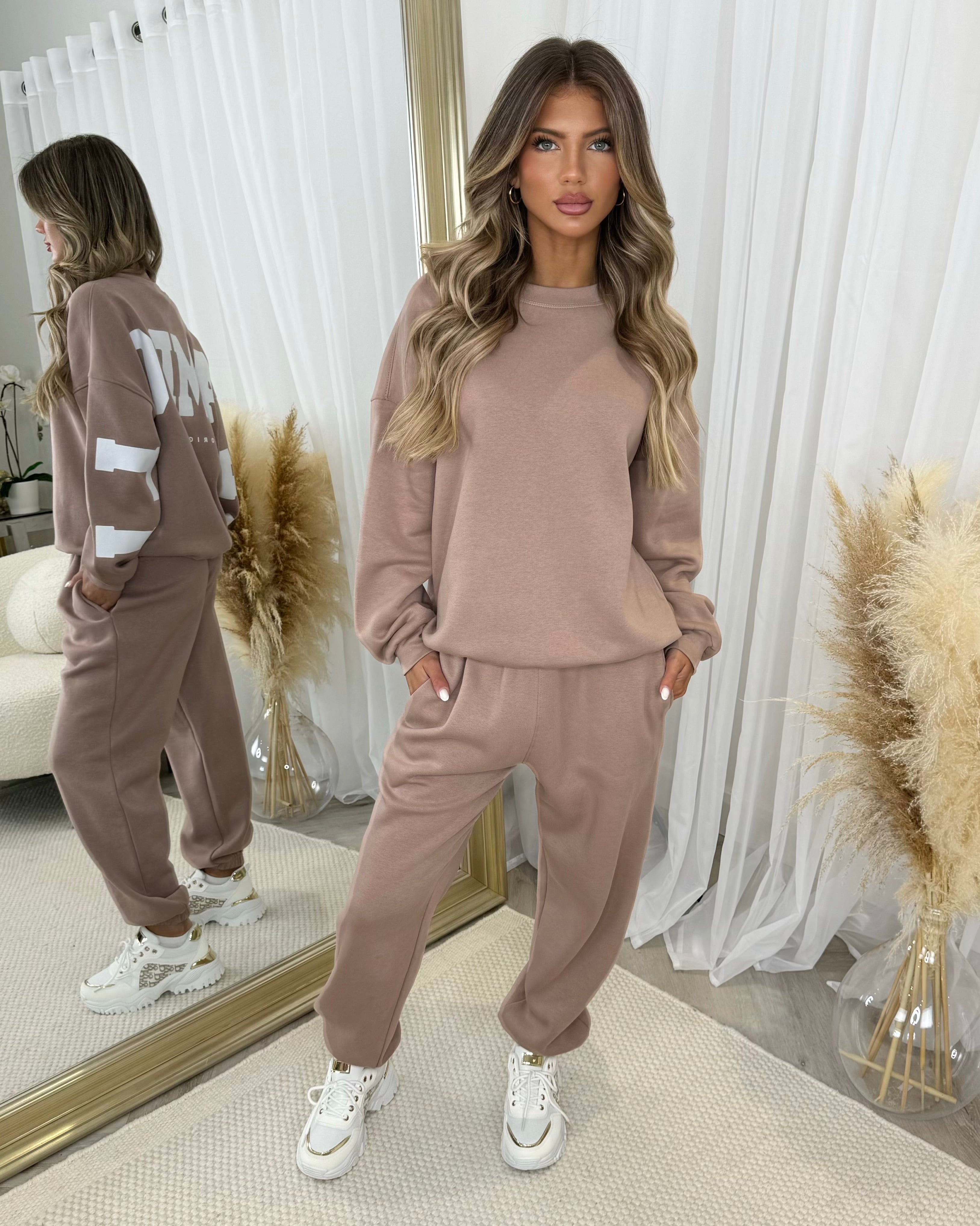Harlow Plain Fleece Lined Cuffed Leg Joggers - Mocha
