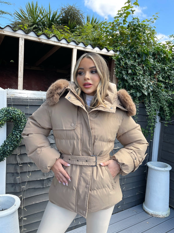 Kelsey Padded Faux Fur Hooded Coat - Camel