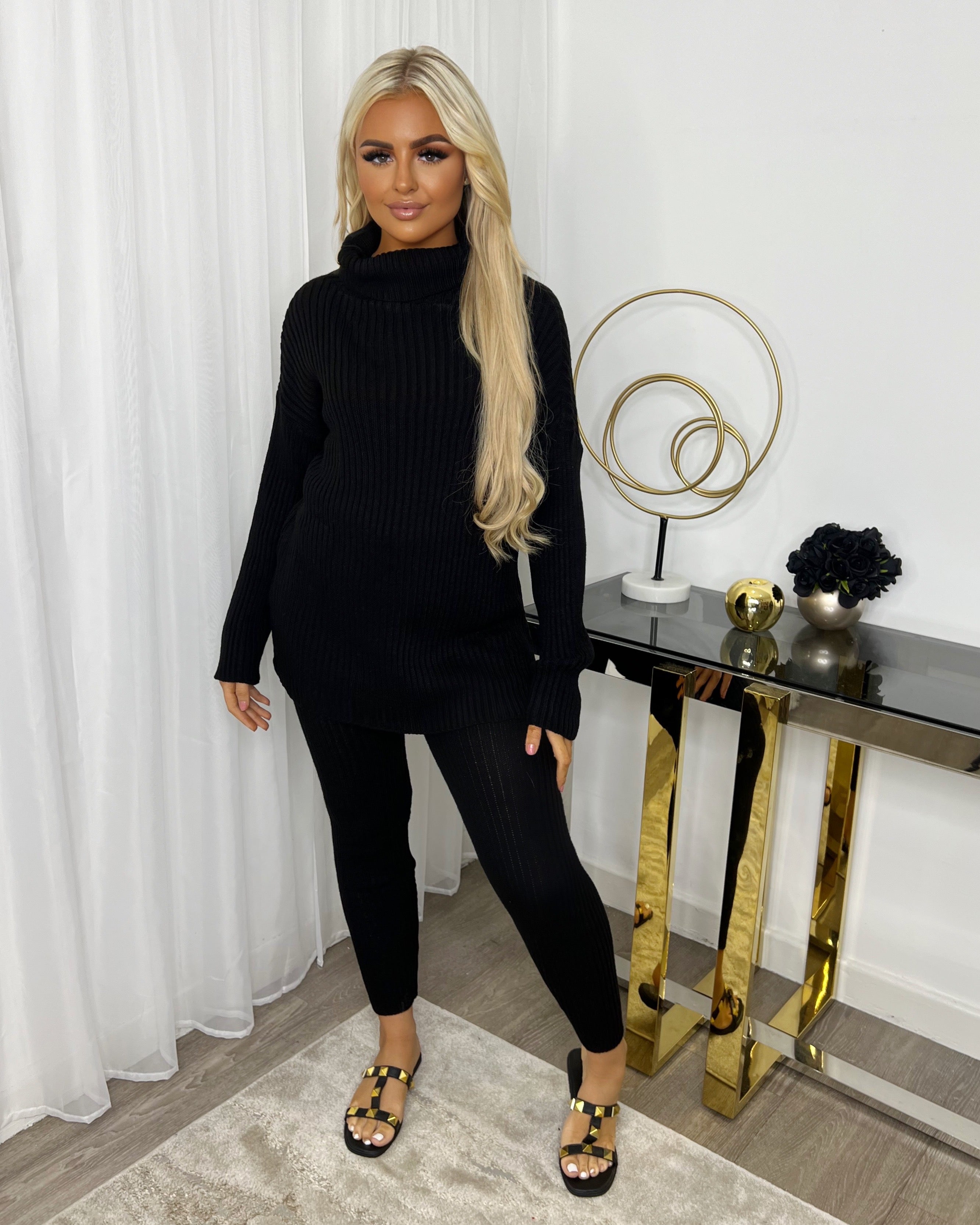 Marissa Polo Neck Knitted Loungeset - Black