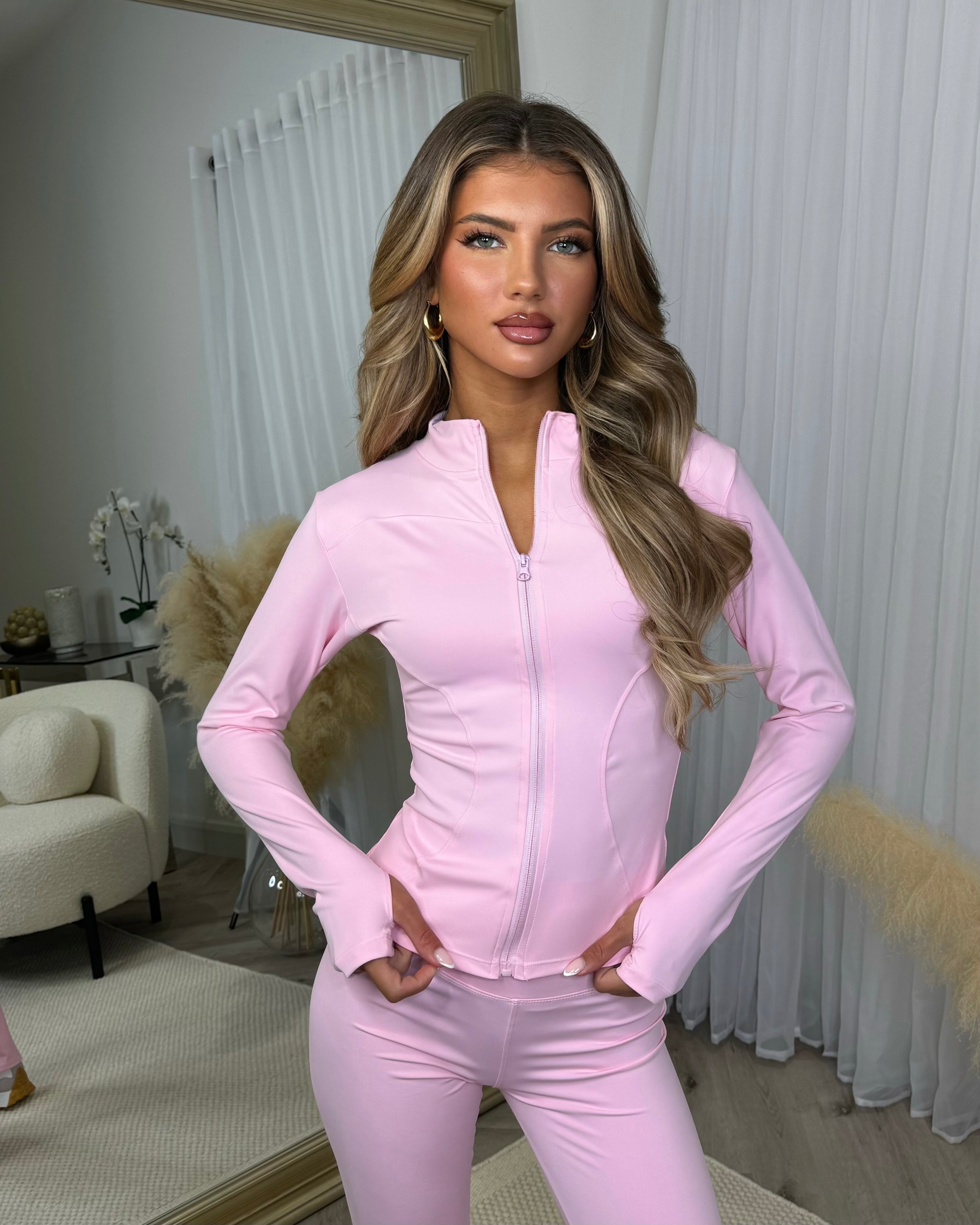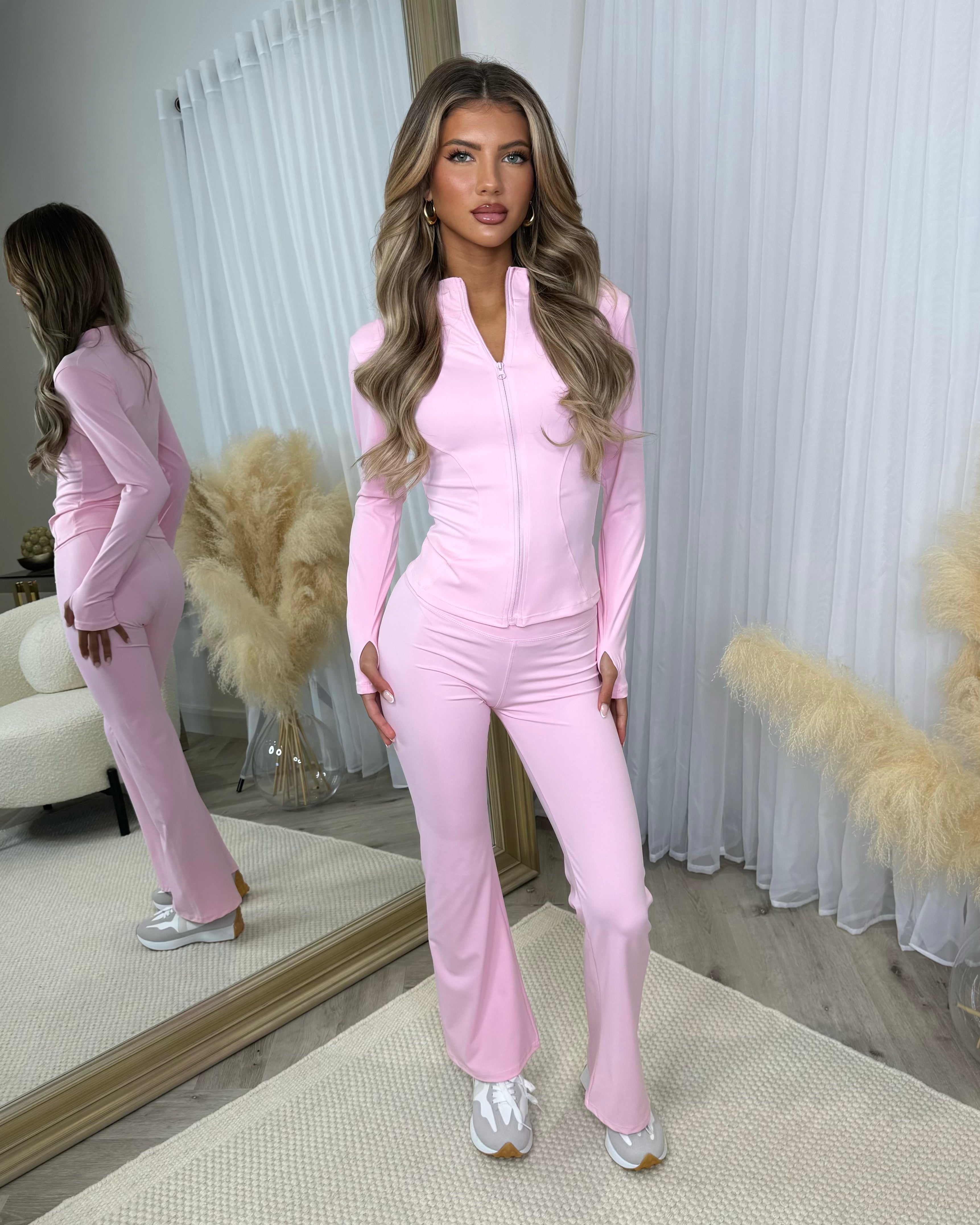 Claire Sculpt Jacket & Flared Trouser Set- Baby Pink