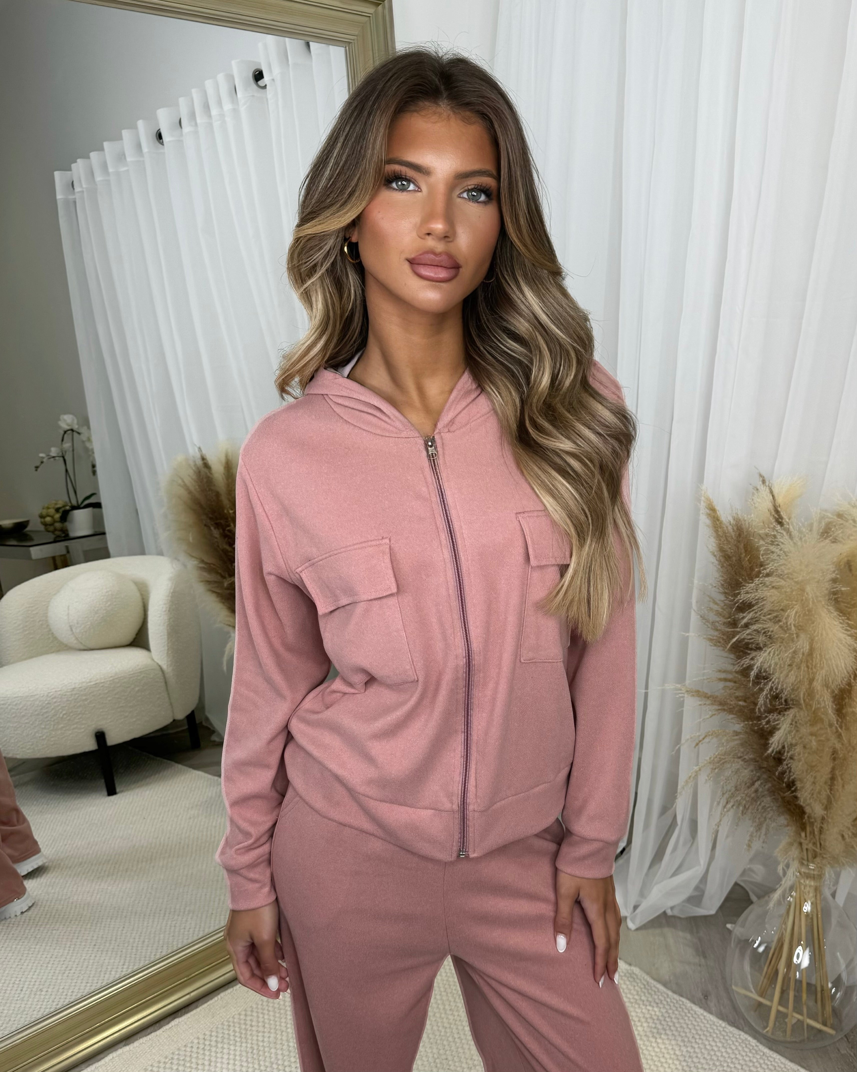 Imogen Zip Front Pocket Detail Straight Leg Trouser Set - Dusky Pink