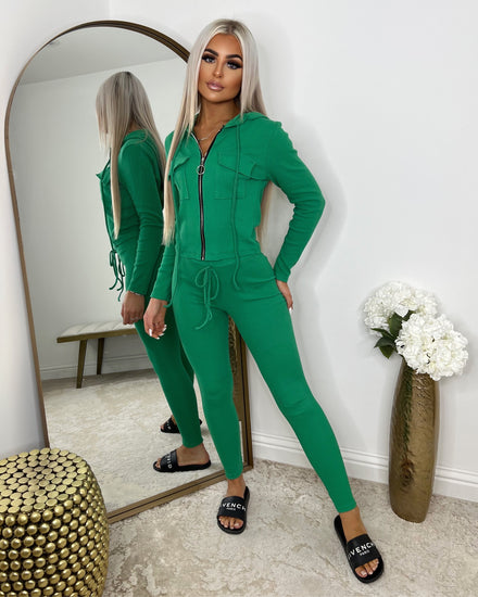 Kayla Frill Full Zip Loungewear - Khaki