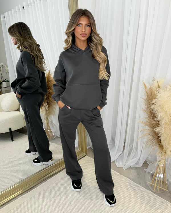 Ada Plain Fleece Lined Straight Leg Joggers - Slate Grey