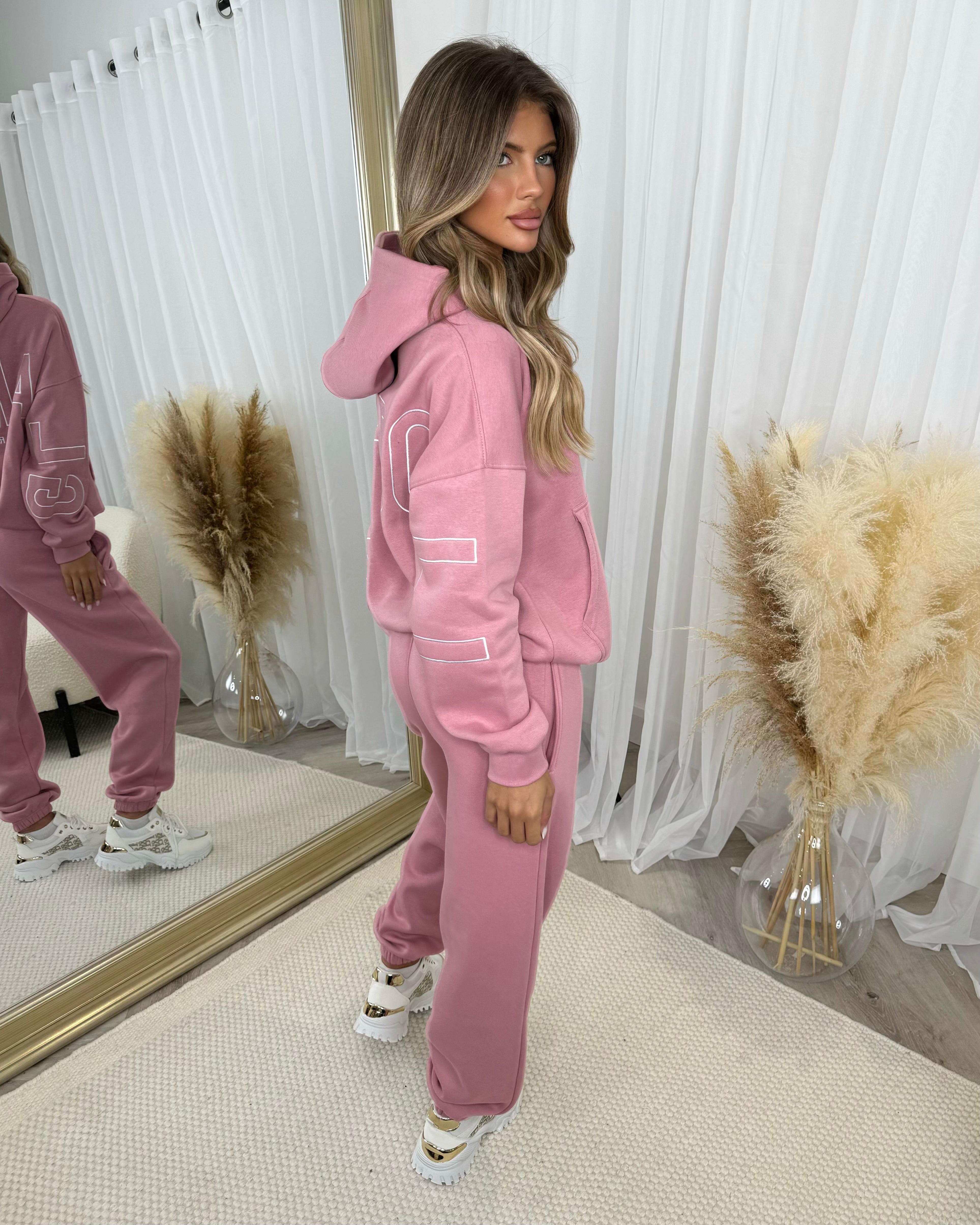 Clara 'GLAMDOLL' Embroidery Outline Detail Back Design Hoodie - Blush Pink
