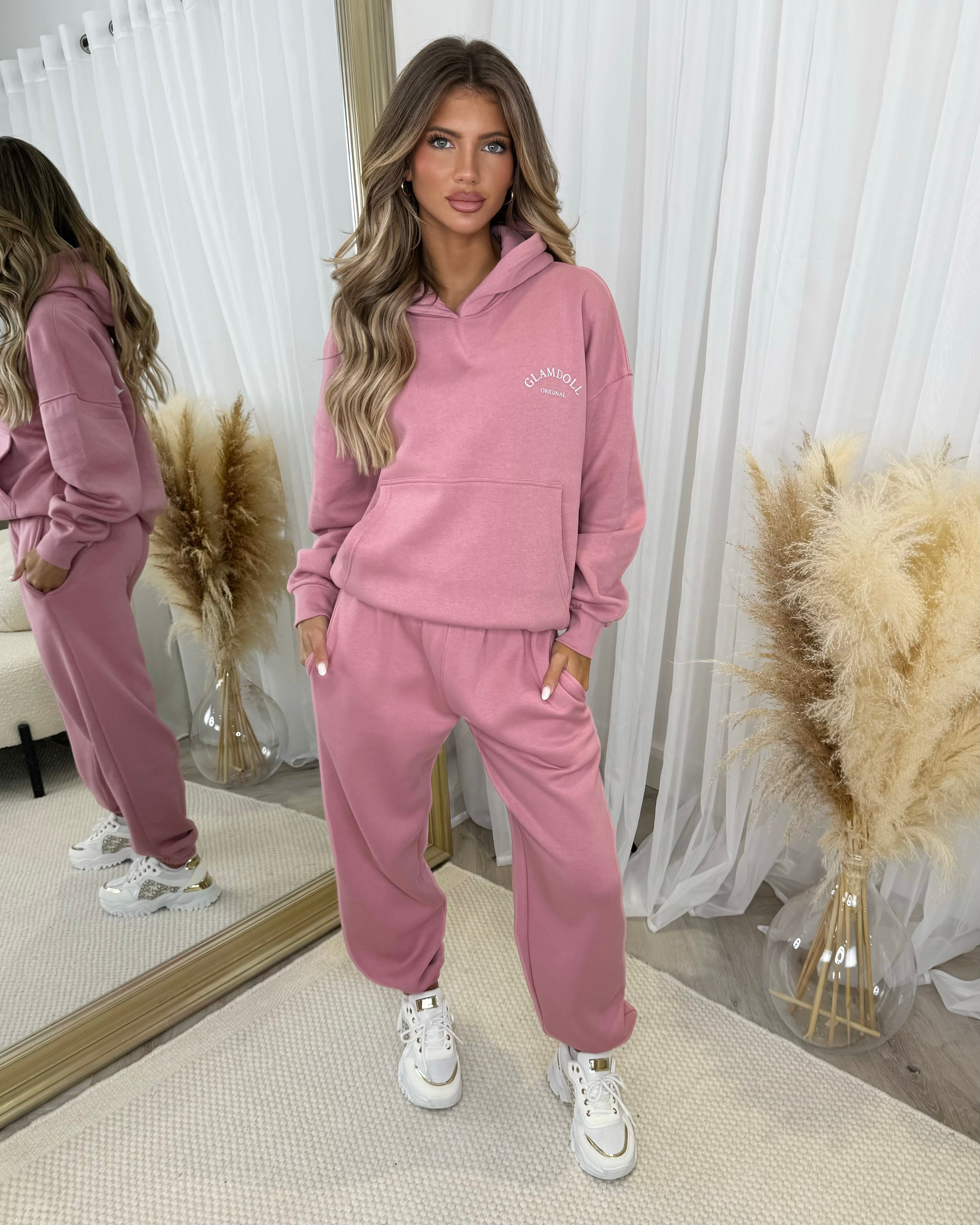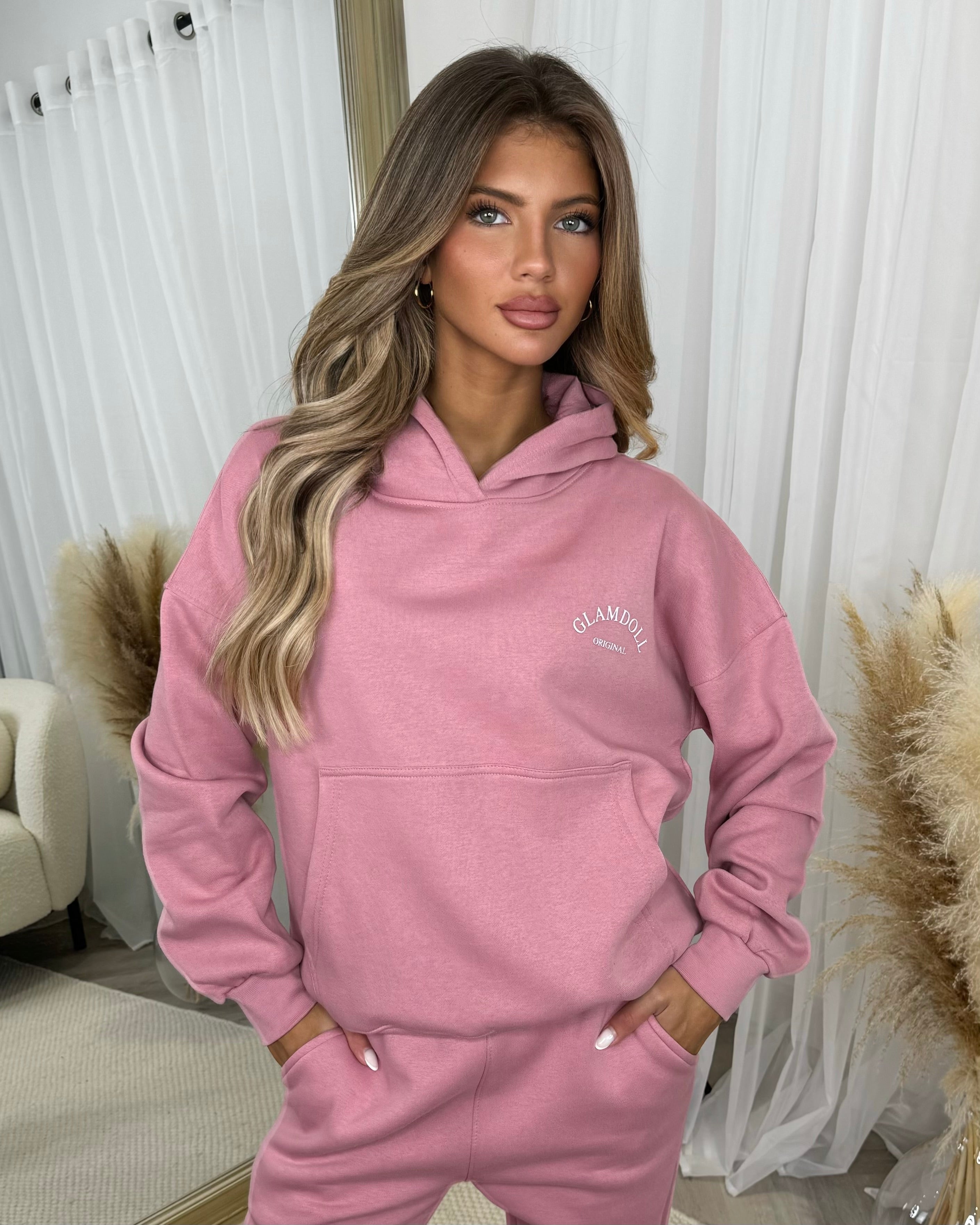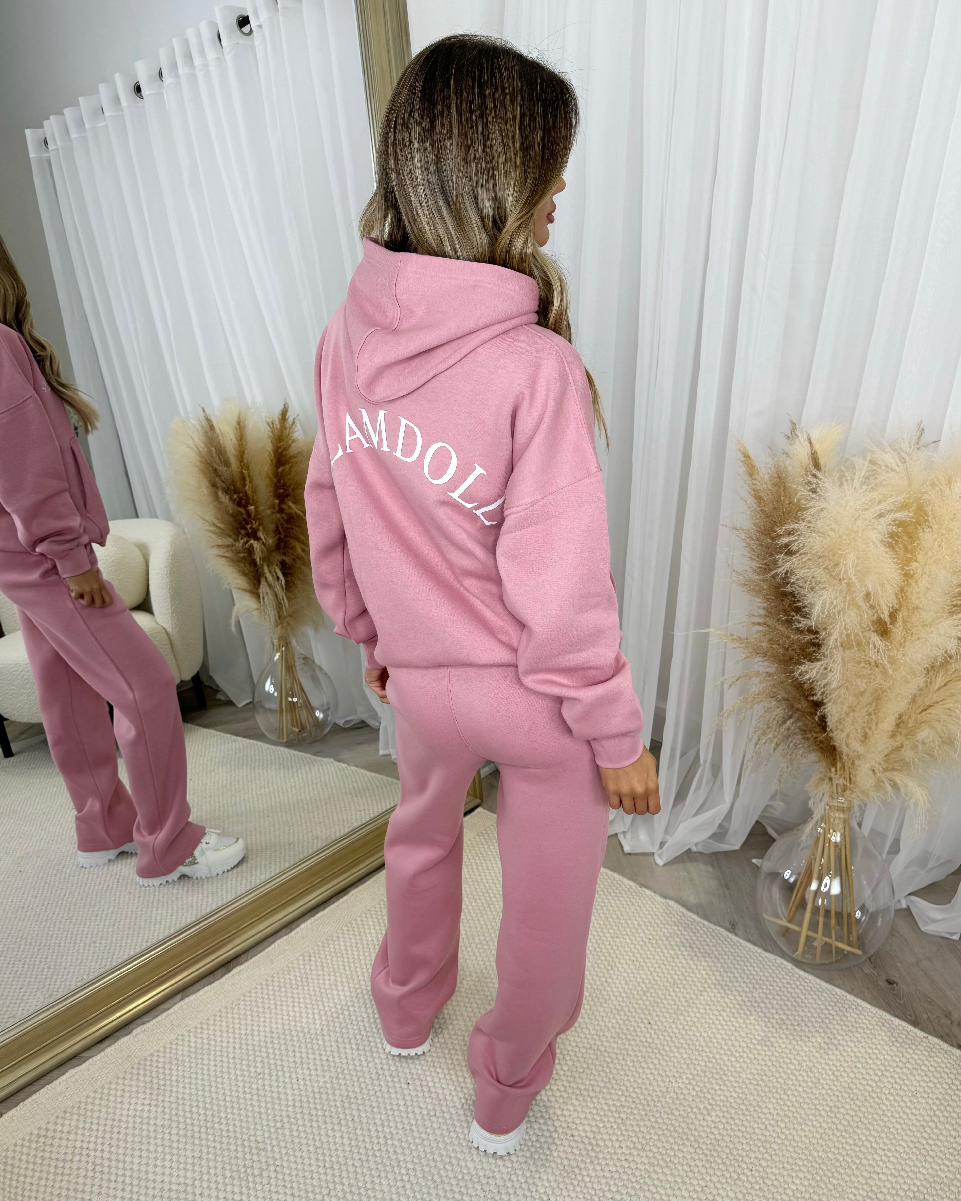 Lydia 'GLAMDOLL ORIGINAL' Front & Back Print Design Fleece Lined Hoodie - Blush Pink