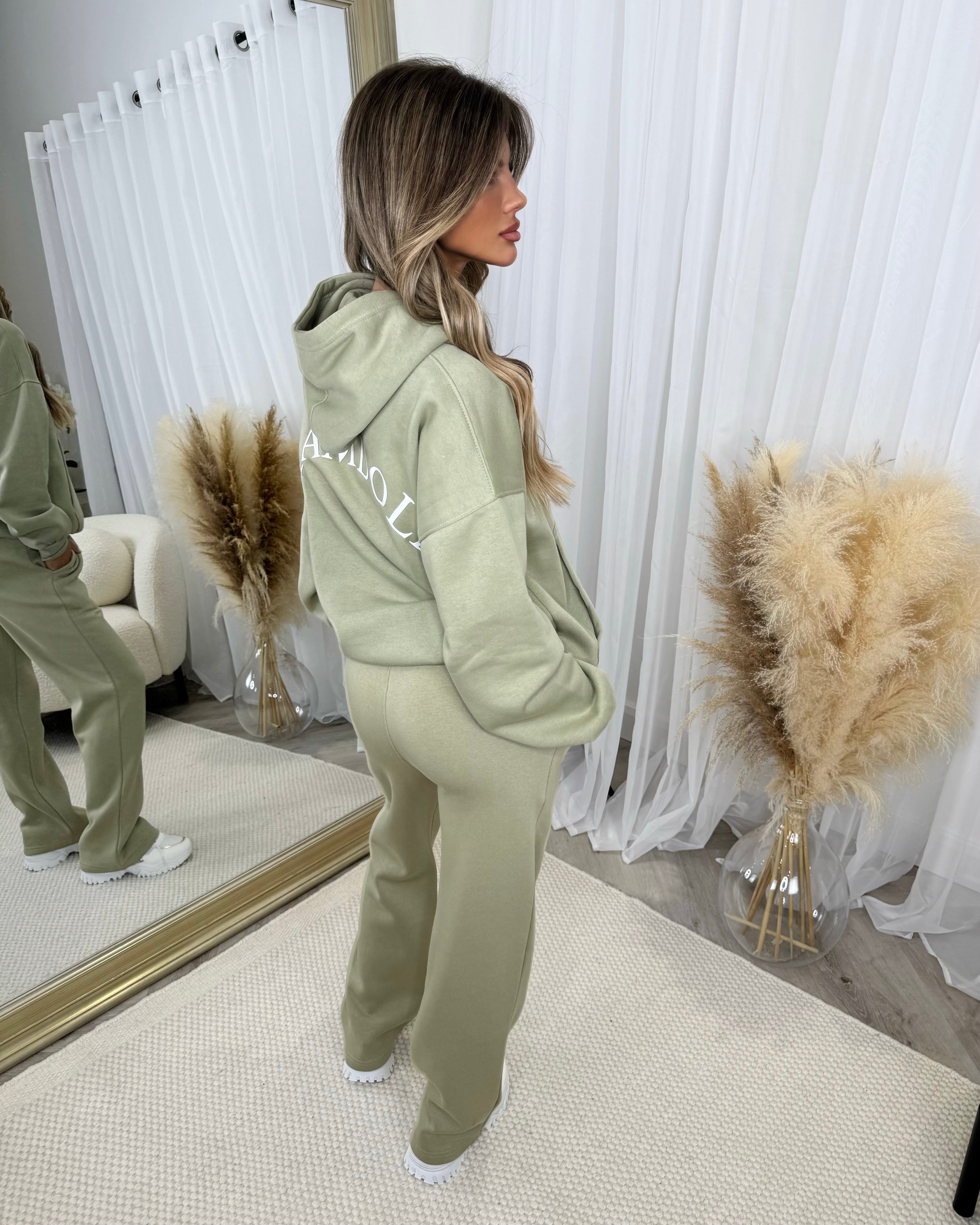 Lydia 'GLAMDOLL ORIGINAL' Front & Back Print Design Fleece Lined Hoodie - Sage Green