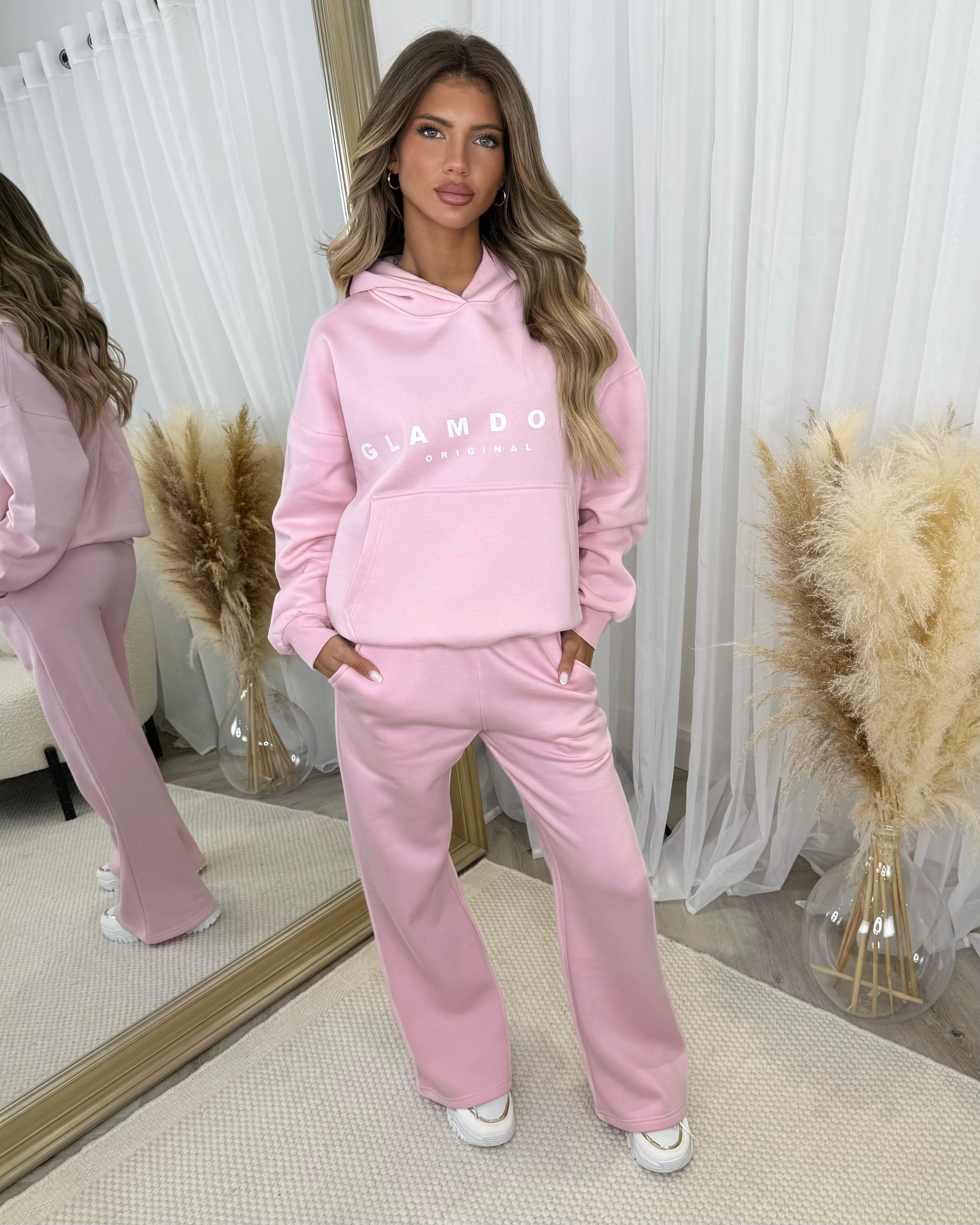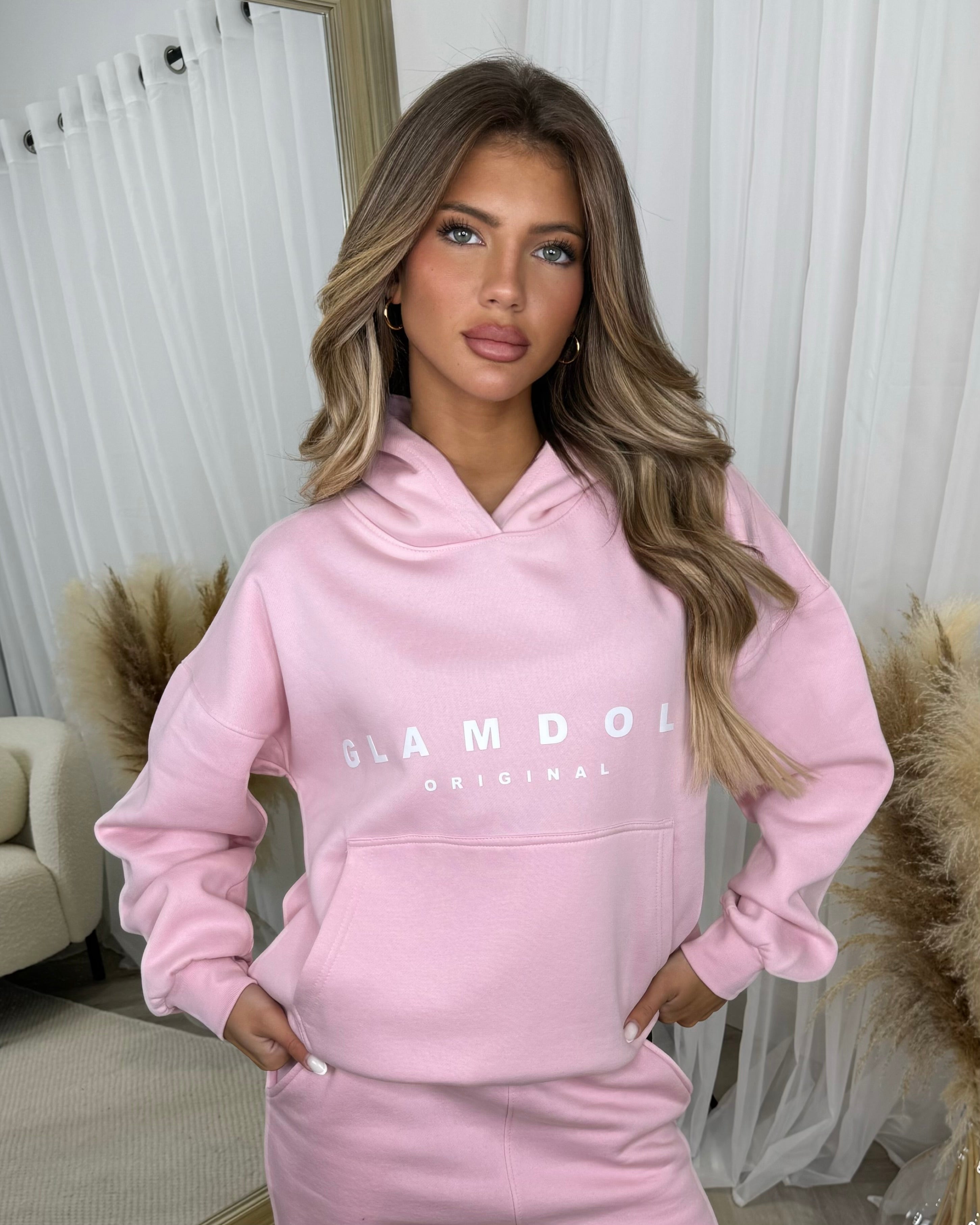 Skylar 'GLAMDOLL' High Density Front Detail Fleece Lined Hoodie - Baby Pink