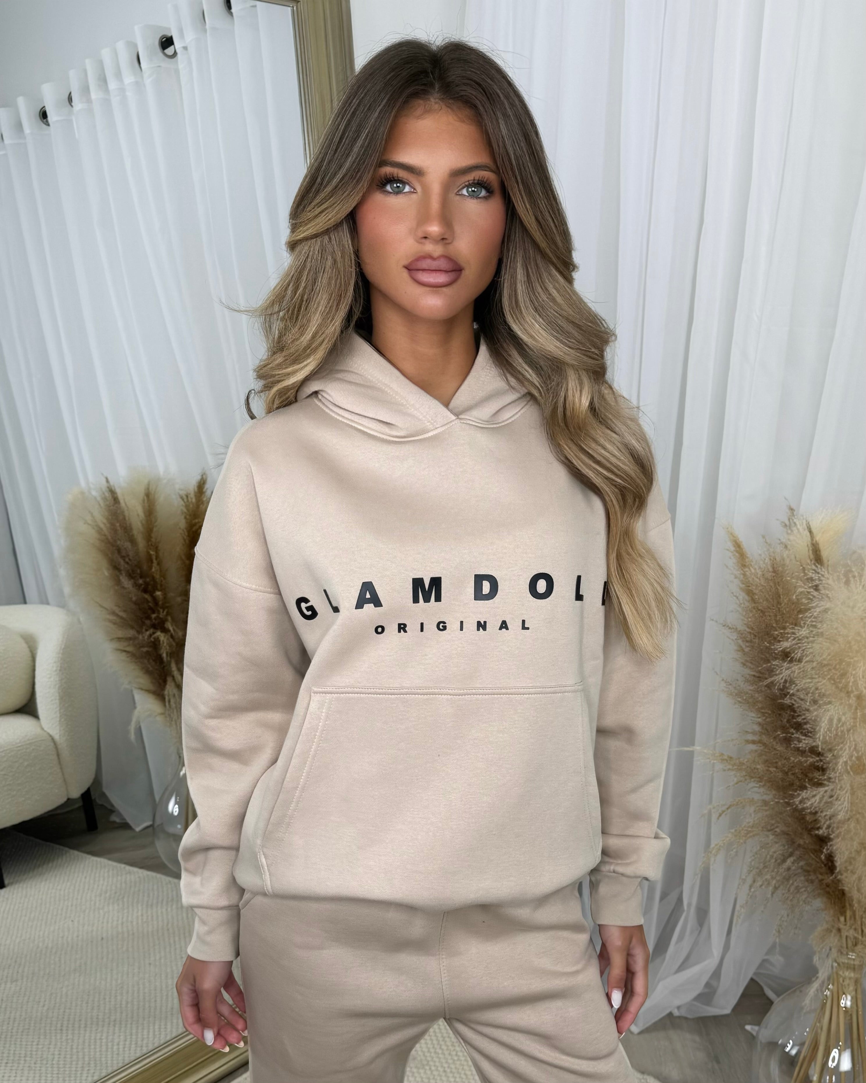 Skylar 'GLAMDOLL' High Density Front Detail Fleece Lined Hoodie - Beige