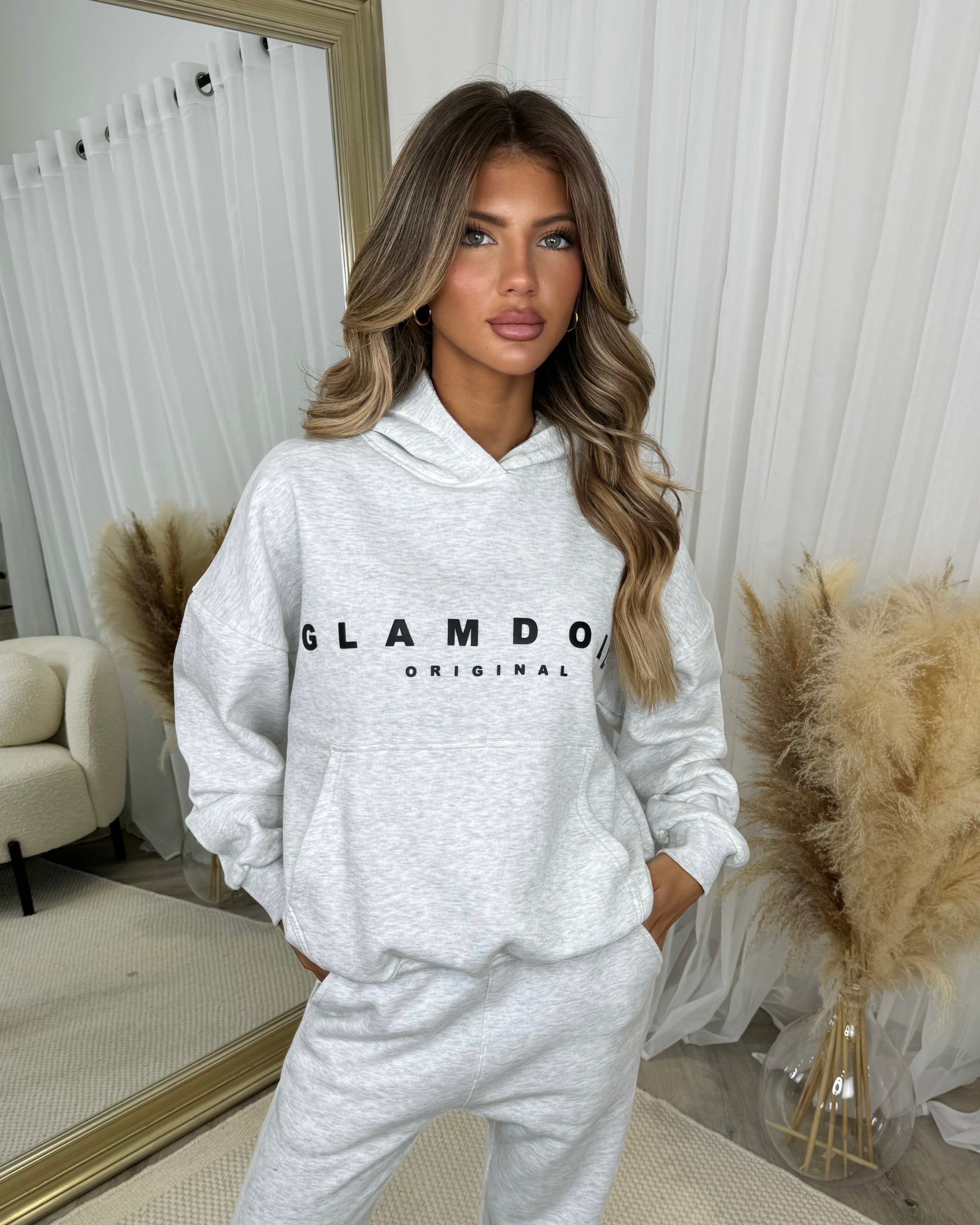 Skylar 'GLAMDOLL' High Density Front Detail Fleece Lined Hoodie - Bleach Grey