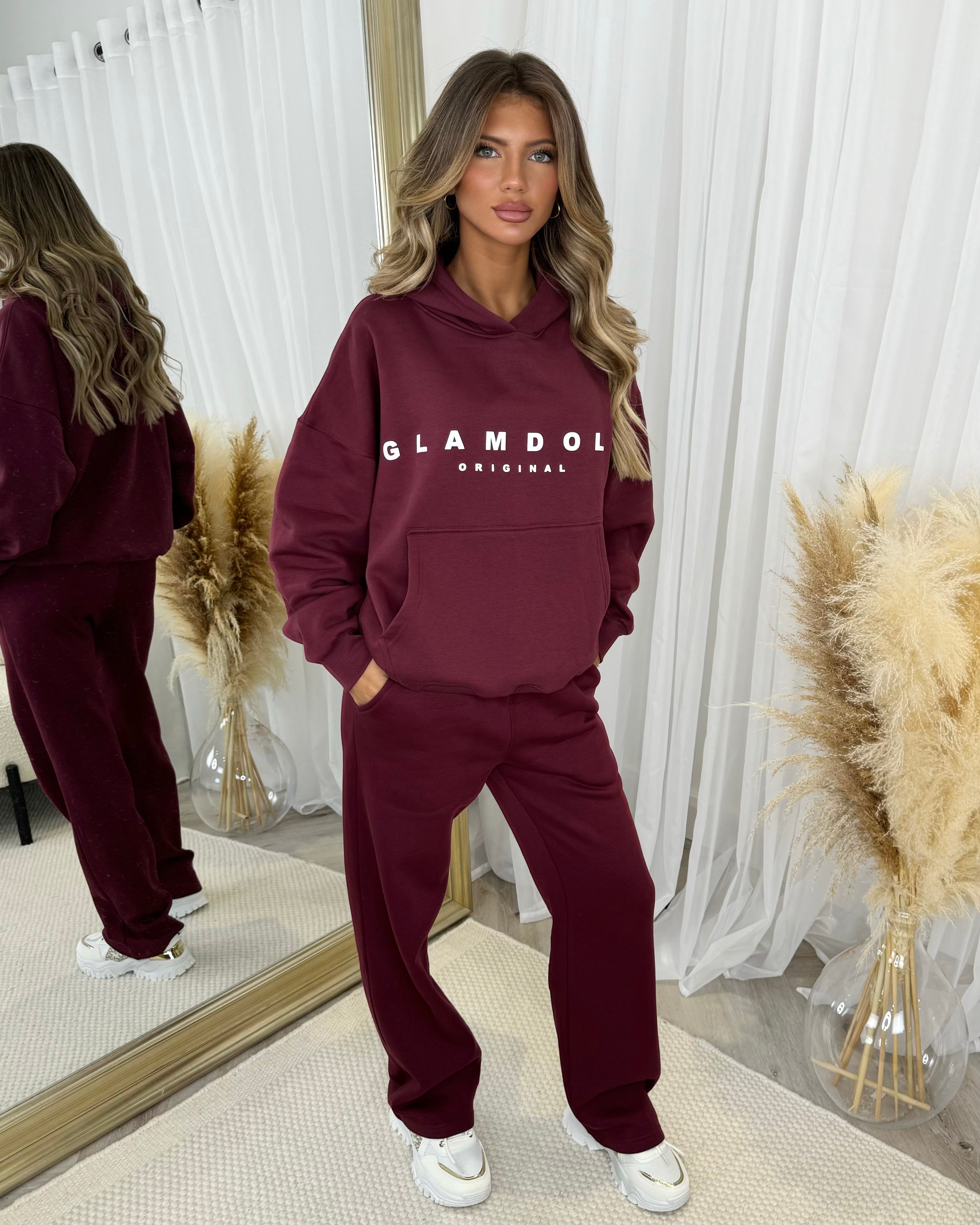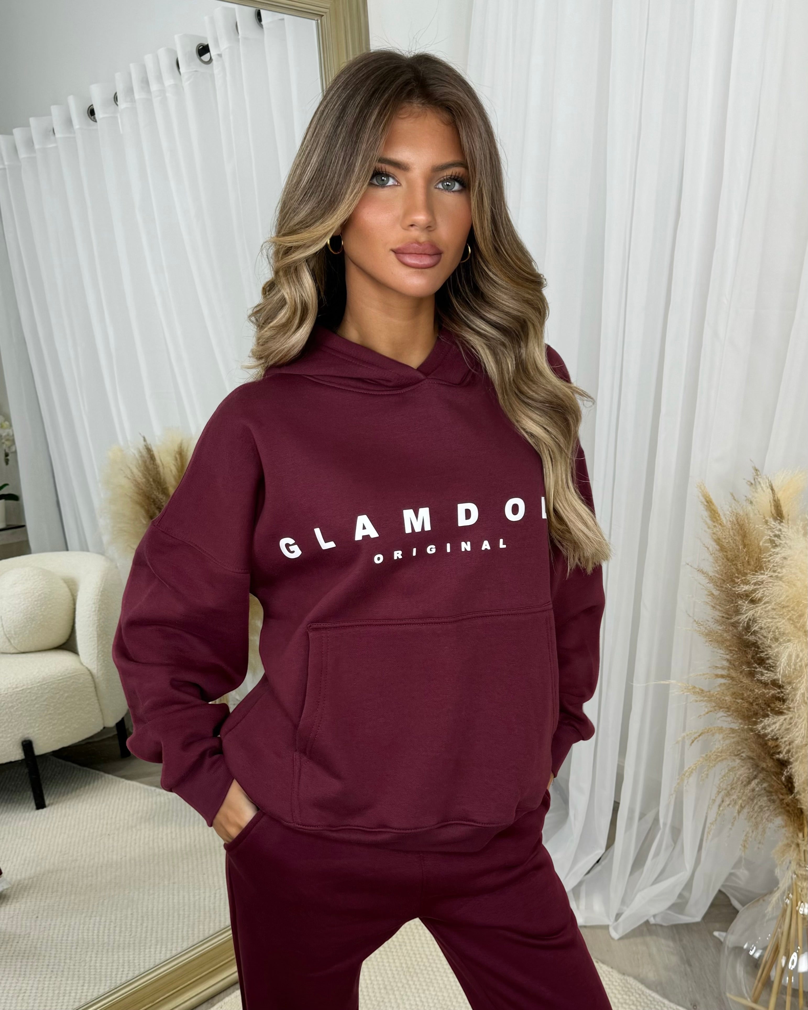 Skylar 'GLAMDOLL' High Density Front Detail Fleece Lined Hoodie - Burgundy