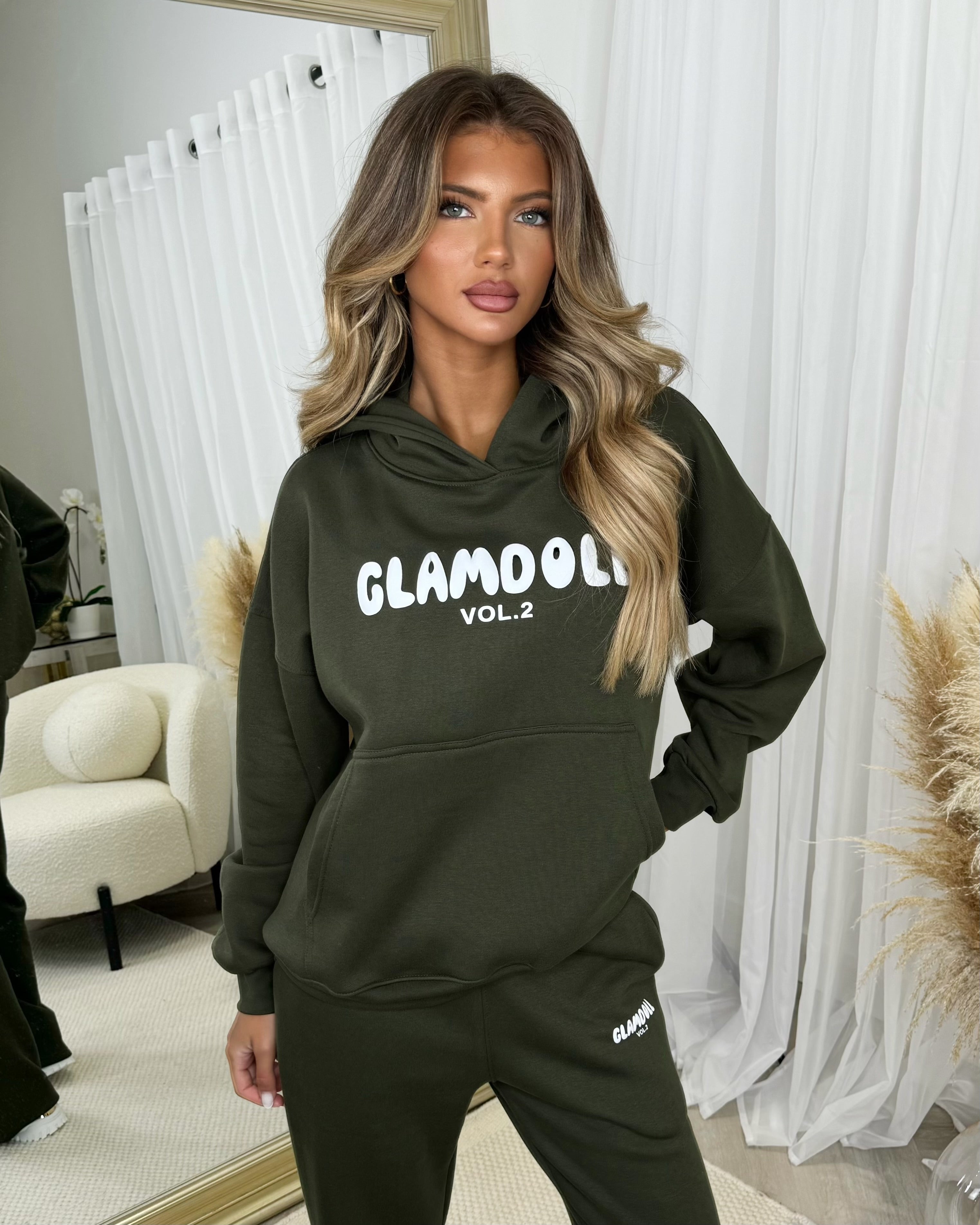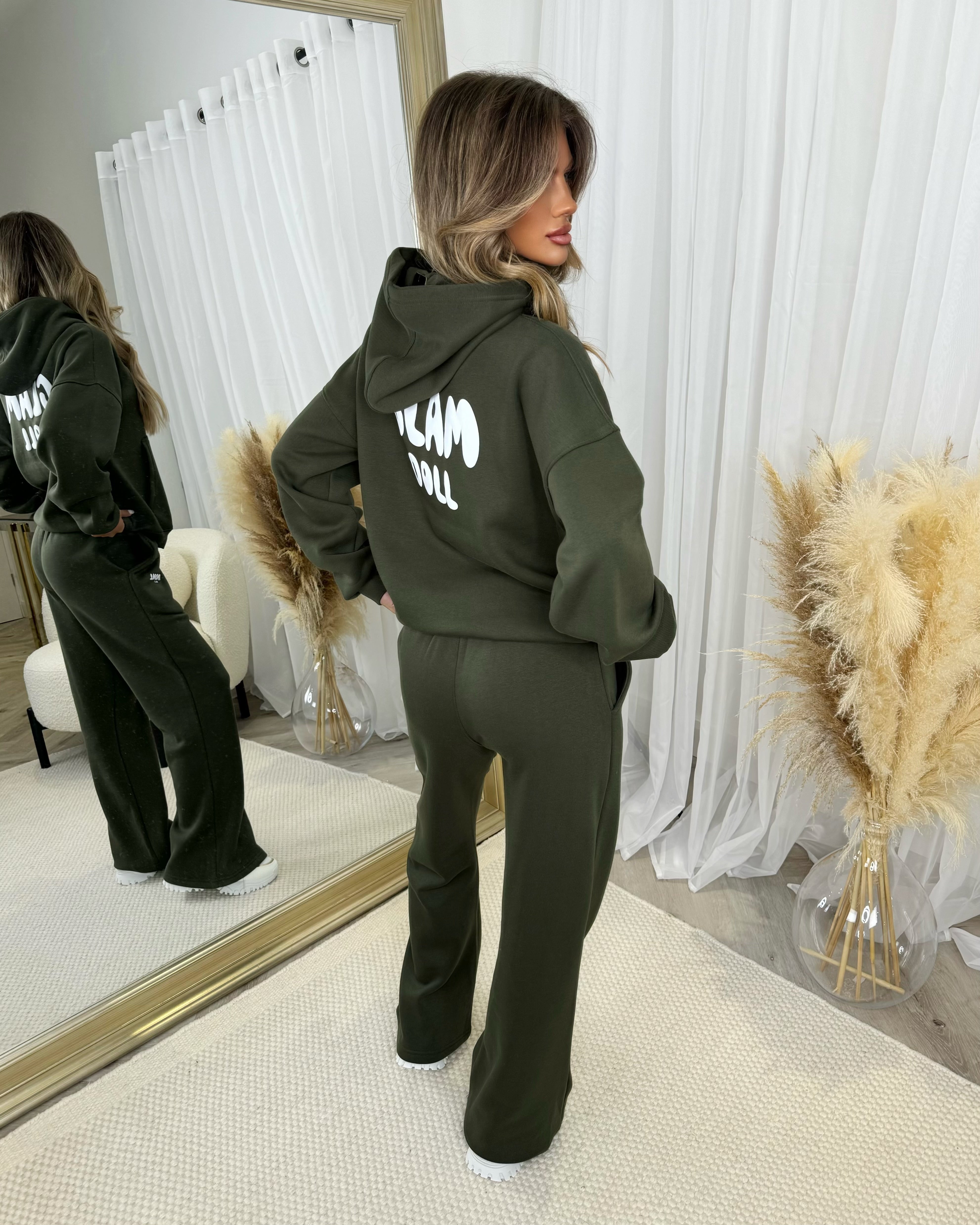 Zoey 'GLAMDOLL' BUBBLE PRINT Design Hoodie & Flared Jogger Set - Khaki Green